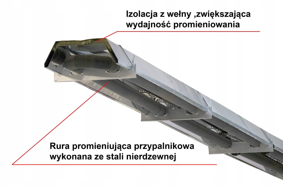 Promienniki gazowe rurowe są zasilane gazem płynnym lub ziemnym. Służą do ogrzewania hal przemysłowych, centrów logistycznych, magazynów, zakładów pracy. Gaz spala się wewnątrz rur stalowych. Rury stalowe rozgrzewają się i promieniują promieniowaniem podczerwonym.