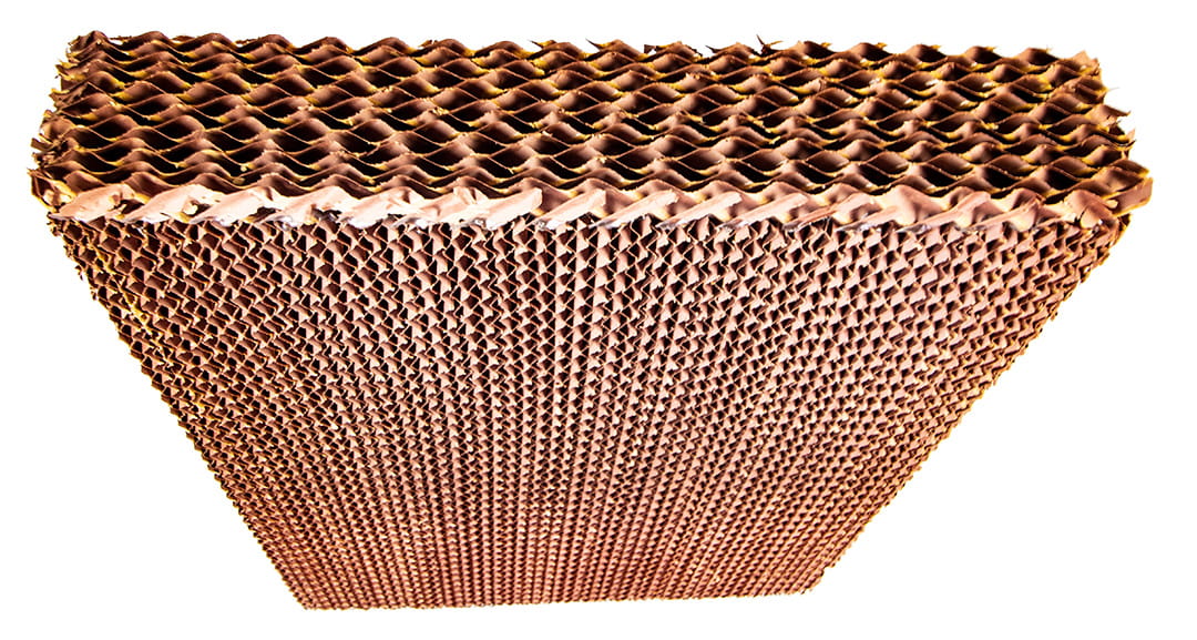 Robimy to poprzez docinanie Padów do podanych rozmiarów. Pad chłodzący posiada strukturę plastra miodu. Powierzchnia wkładu pokryta jest żywicą, która nadaje trwałość oraz są odporność produktu na uszkodzenia na skutek działania czynników naturalnych. Pad podczas nawilżania wodą wykorzystuje zjawisko ewaporyzacji, czyli odparowywania wody. Wkład chłodzi temperaturę powietrza pobieranego z zewnątrz o 6-12°C, przy tym nawilżając i oczyszczając powietrze.