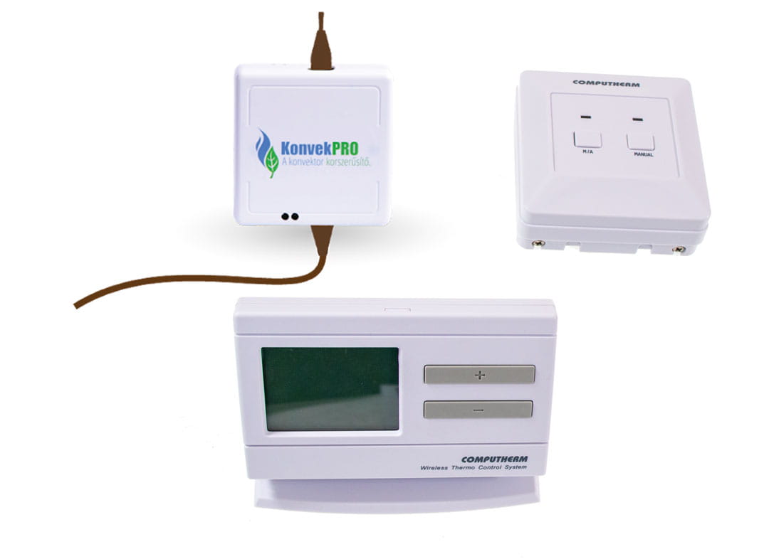 Przy pomocy sterownika COMPUTHERM KonvekPRO w łatwy sposób można zrealizować automatyczne, programowalne ogrzewanie pomieszczenia wyposażonego w konwektor gazowy. Produkt daje również możliwość sterowania konwektorem z dowolnego miejsca za pomocą termostatu Wi-Fi.